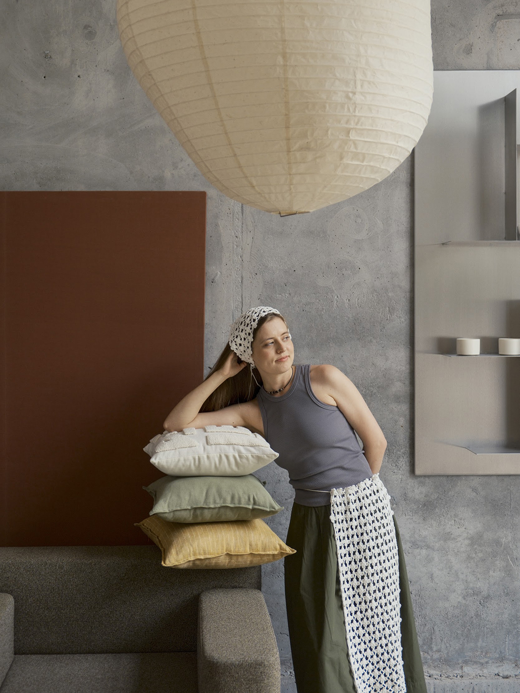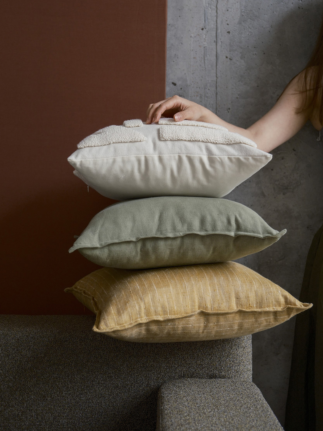 Комбінована геометрична подушка із залишків льону