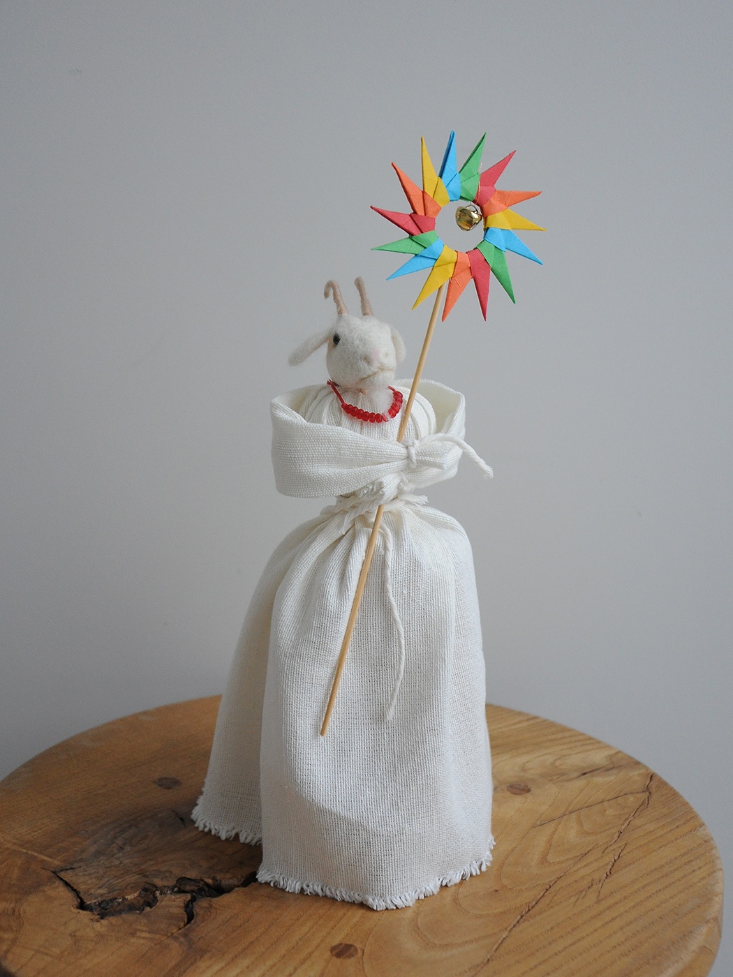 Сучасна інтерпретація українських символів у мінімалістичній формі. Валяна вовняна голова кози, лаконічне тіло мотанки та легка паперова зірка-орігамі створюють виразний, теплий акцент для вашої святкової ялинки.